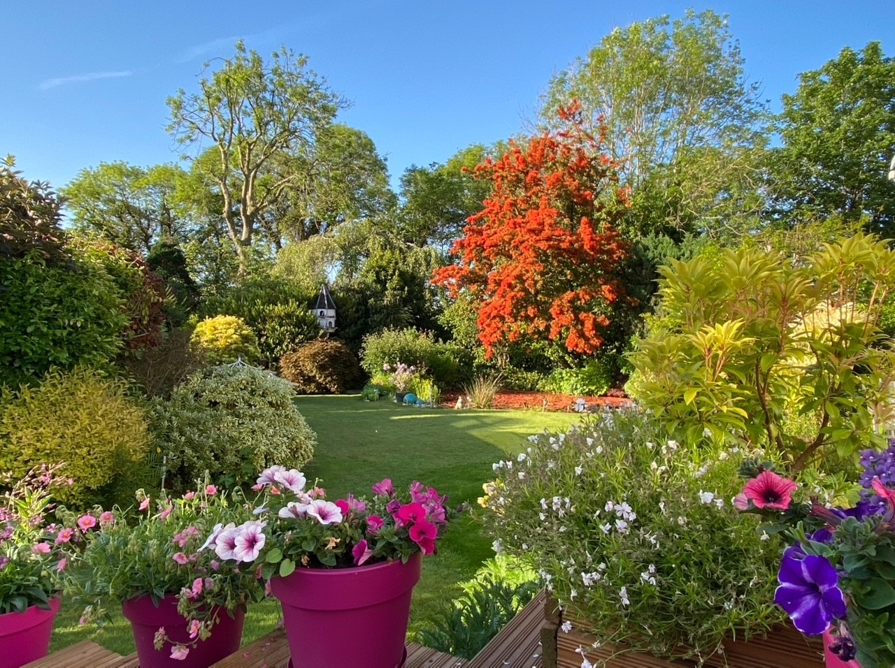 Externally, the property sits on an attractive one‑third‑acre plot, with beautifully manicured gardens and a charming pond, all designed and landscaped for easy maintenance and stunning summer colour. Additional features include a spacious tarmac driveway, a detached double garage, a dedicated workshop and a useful garden shed, providing excellent storage and workspace options.