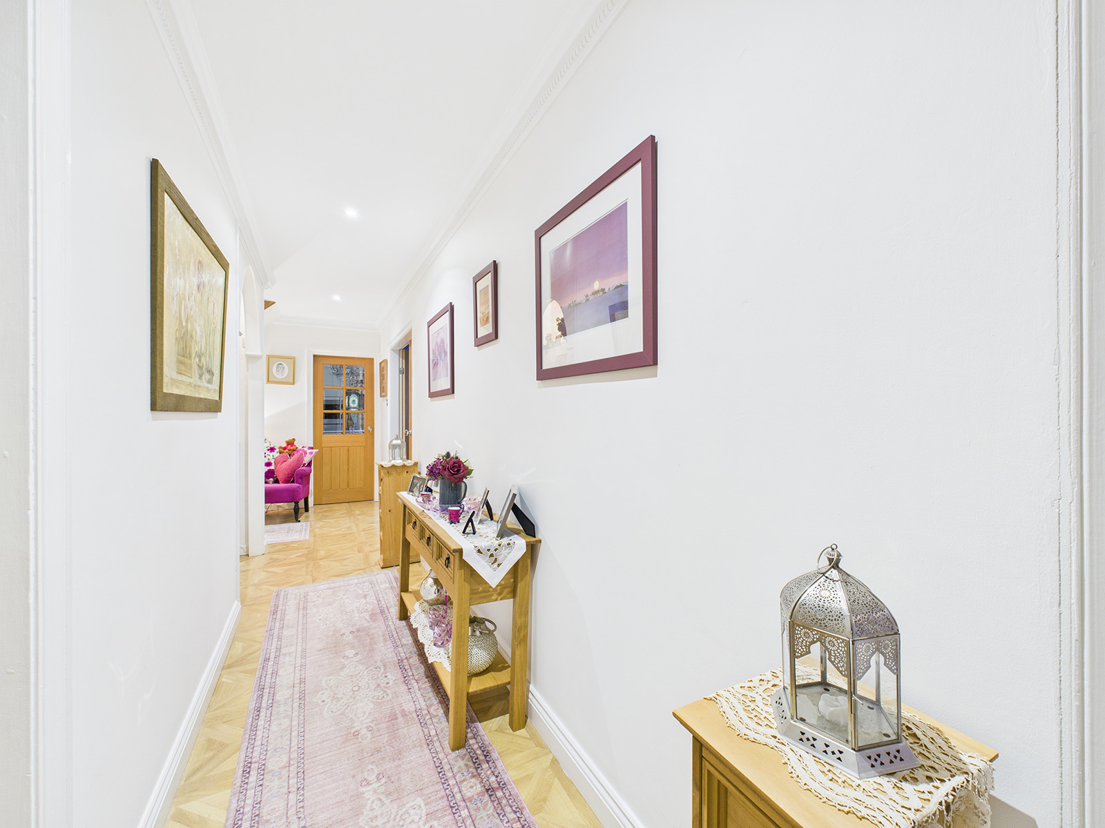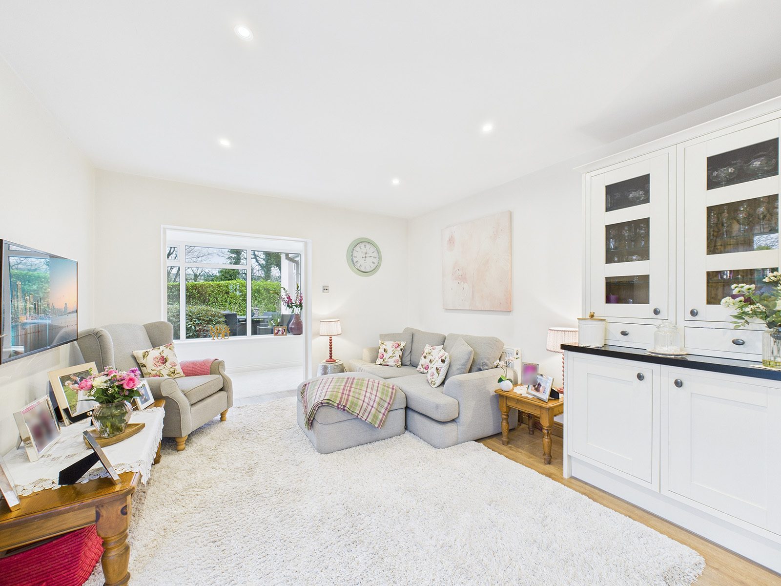 Recessed downlights offer a clean, modern finish, while the wood flooring continues throughout for easy maintenance and continuity of style.