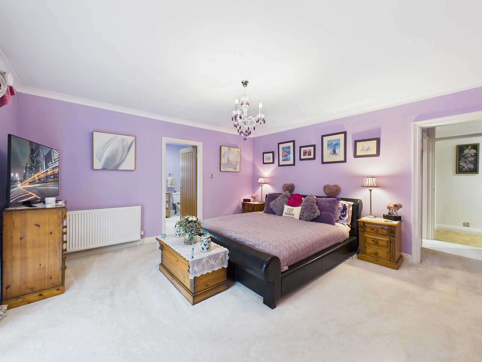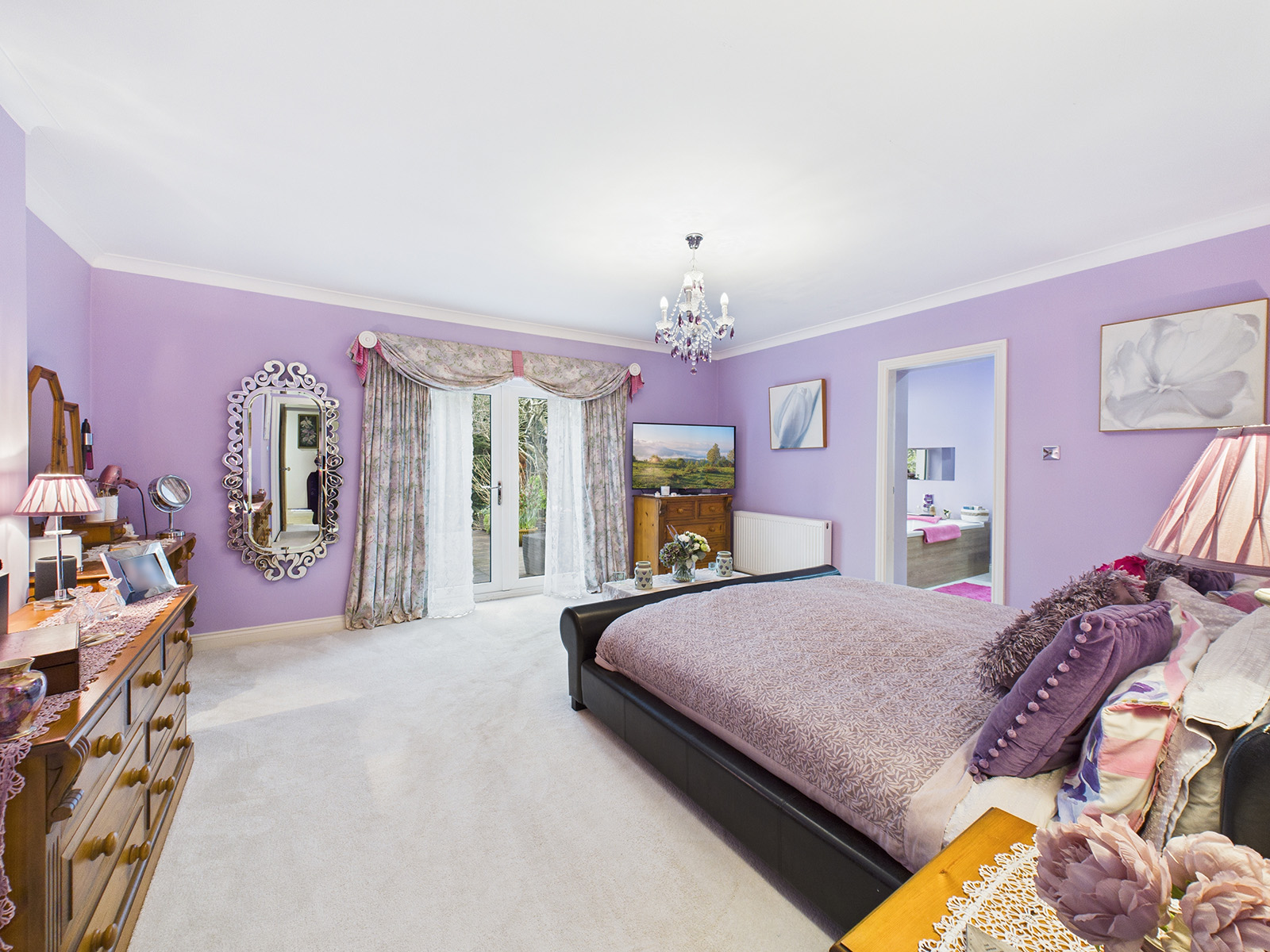 There is ample room for a super king‑sized bed, vanity table and chest of drawers.